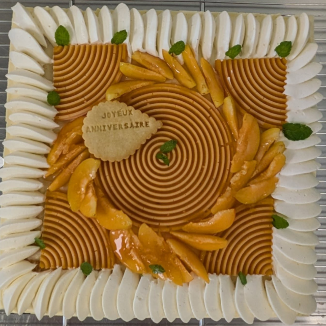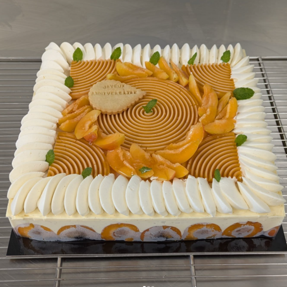 📍Génoise📍Crème diplomate📍Abricots frais📍Confit d'abricot📍 Chantilly mascarpone